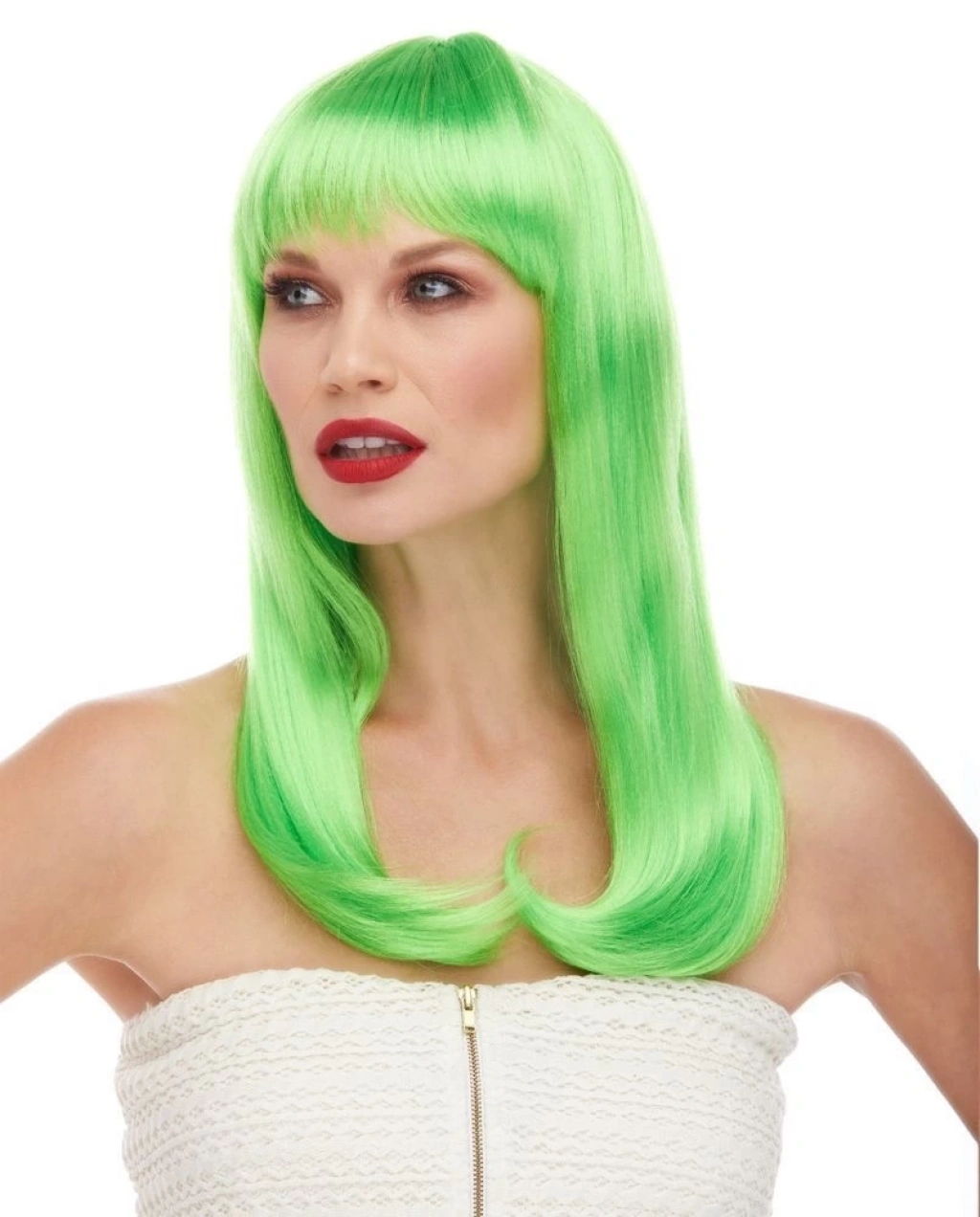 Yeşil Renk Uzun Düz Parti Peruğu