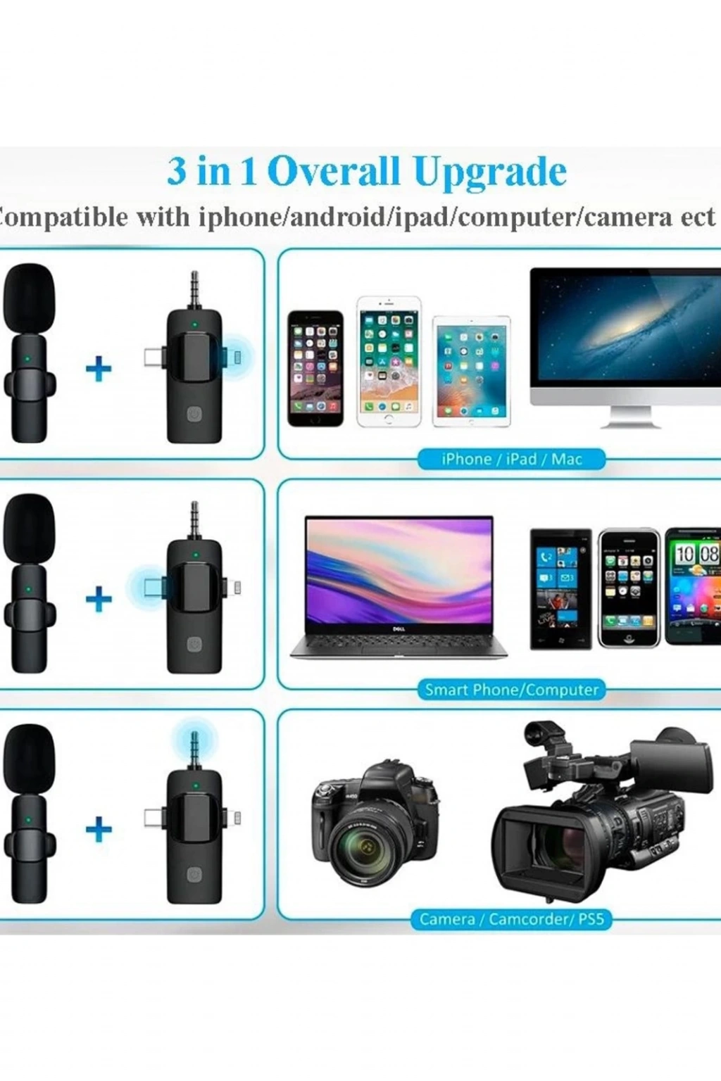 Yüksek Kalite Profesyonel 3 In 1 Kablosuz Taşınabilir Yaka Mikrofonu Youtube Facebook Tiktok